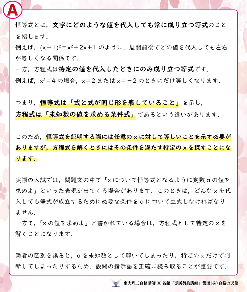 恒等式と方程式は何が異なるのですか?